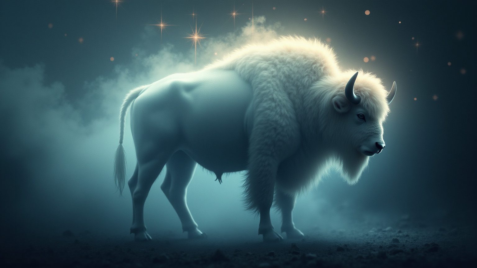 Il bufalo bianco è visto in molte culture native americane come un simbolo sacro, un messaggero di pace e prosperità.