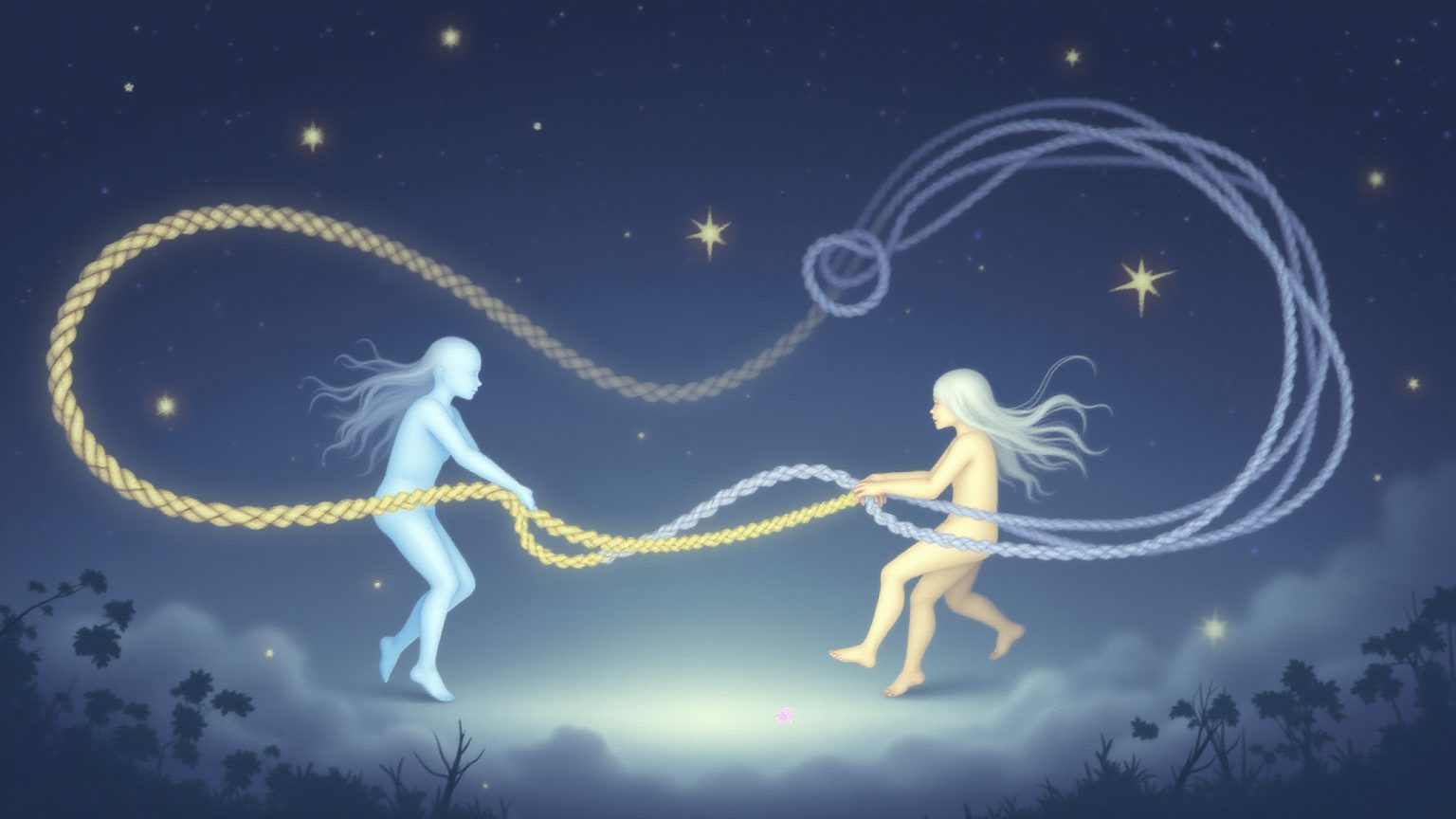Nei sogni di tiro alla fune, l’anima combatte tra desideri opposti, rivelando segreti nascosti e forze interiori in lotta.